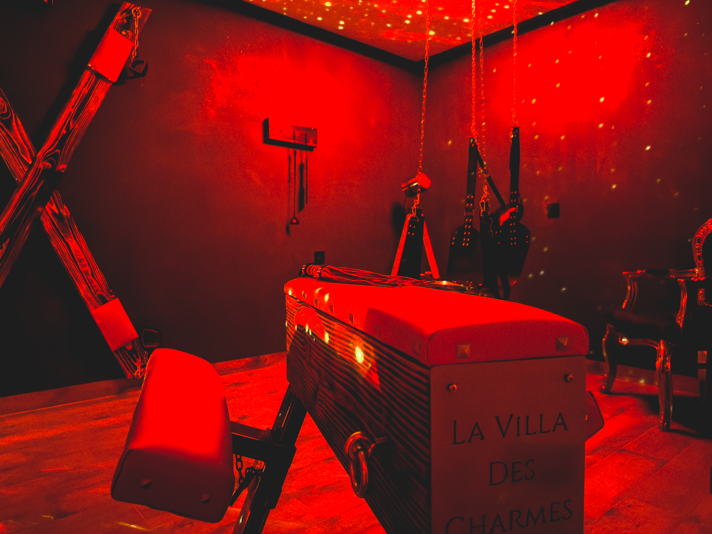 Une croix saint André, une balançoire et un banc à fessée… pour laisser libre cours à tous vos plus grands fantasmes.